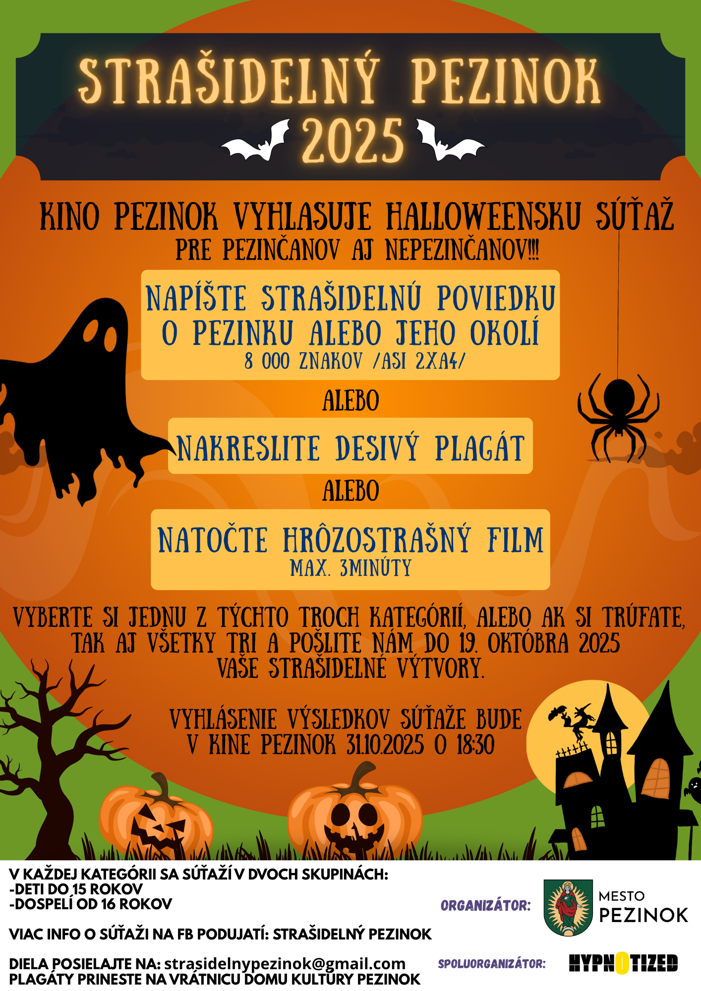 9. vyhodnotenie súťaže bude v piatok 31. októbra 2025 o 18:00hod. v Kine Pezinok.
